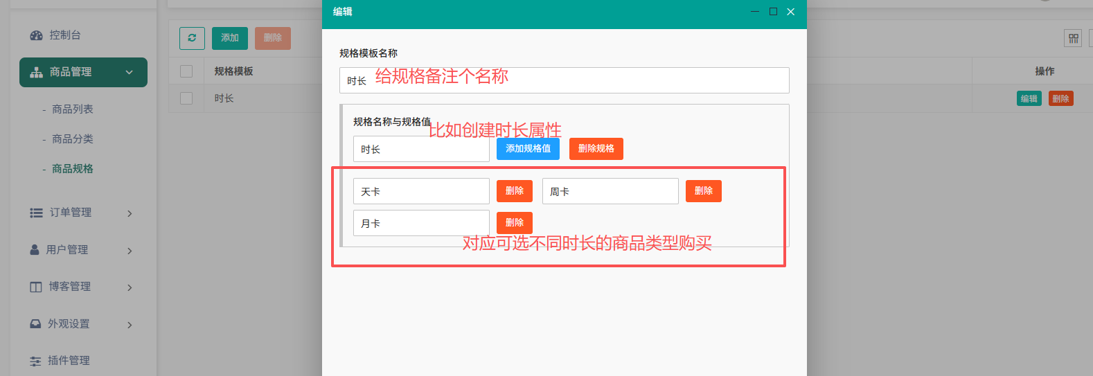 首先给规格分类自定义个名称,用于快速识别该规格的作用和选择,接着填写规格名称,创建对应规格